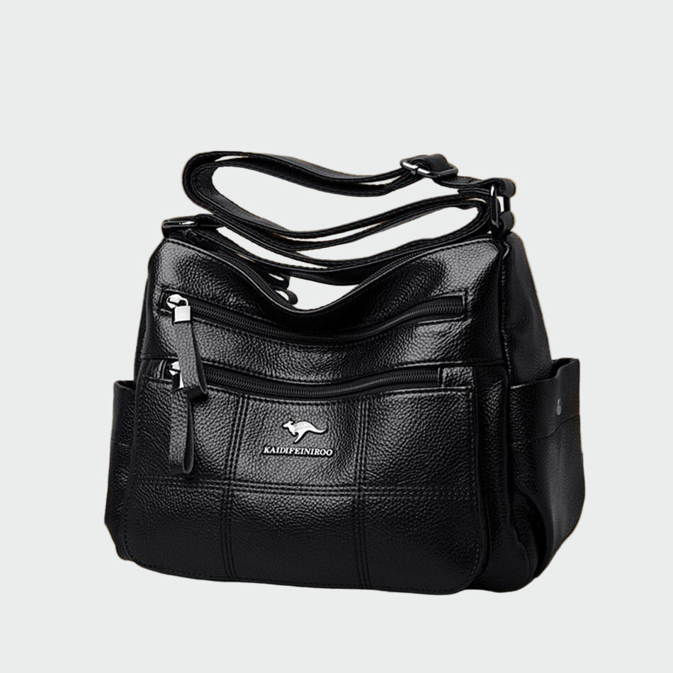 Πρακτική τσάντα ώμου σε μαύρη απόχρωση με κλασικό και λειτουργικό σχεδιασμό. Διαθέτει πολλαπλές εξωτερικές θήκες με φερμουάρ που προσφέρουν άνεση στην οργάνωση και άμεση πρόσβαση στα απαραίτητα. Το ανθεκτικό υλικό της και τα στιβαρά χερούλια εξασφαλίζουν καθημερινή αντοχή, ενώ ο μινιμαλιστικός χαρακτήρας της ταιριάζει με κάθε εμφάνιση. Μια επιλογή επιλογής για όσες αναζητούν και πρακτική σε μία τσάντα.