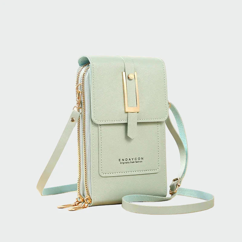 Μικρή τσάντα χιαστί σε απαλό πράσινο χρώμα με κομψό και σύγχρονο σχεδιασμό. Διαθέτει καπάκι με μεταλλική λεπτομέρεια σε χρυσό, καθώς και διπλά φερμουάρ που προσφέρουν πρακτική οργάνωση και ασφάλεια. Το ελαφρύ λουράκι επιτρέπει τη μεταφορά, καθιστώντας την επιλογή για καθημερινές βόλτες ή ταξίδια. Ένα αξεσουάρ που συνδυάζει φρεσκάδα, στυλ και λειτουργικότητα.