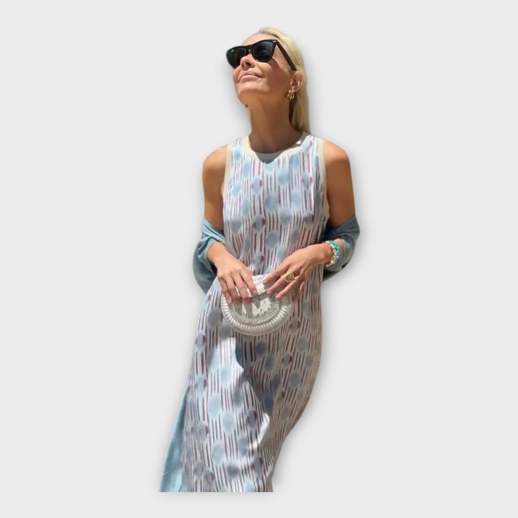 Μάξι Φόρεμα με Γραμμικά Μοτίβα και Αέρινη Ροή