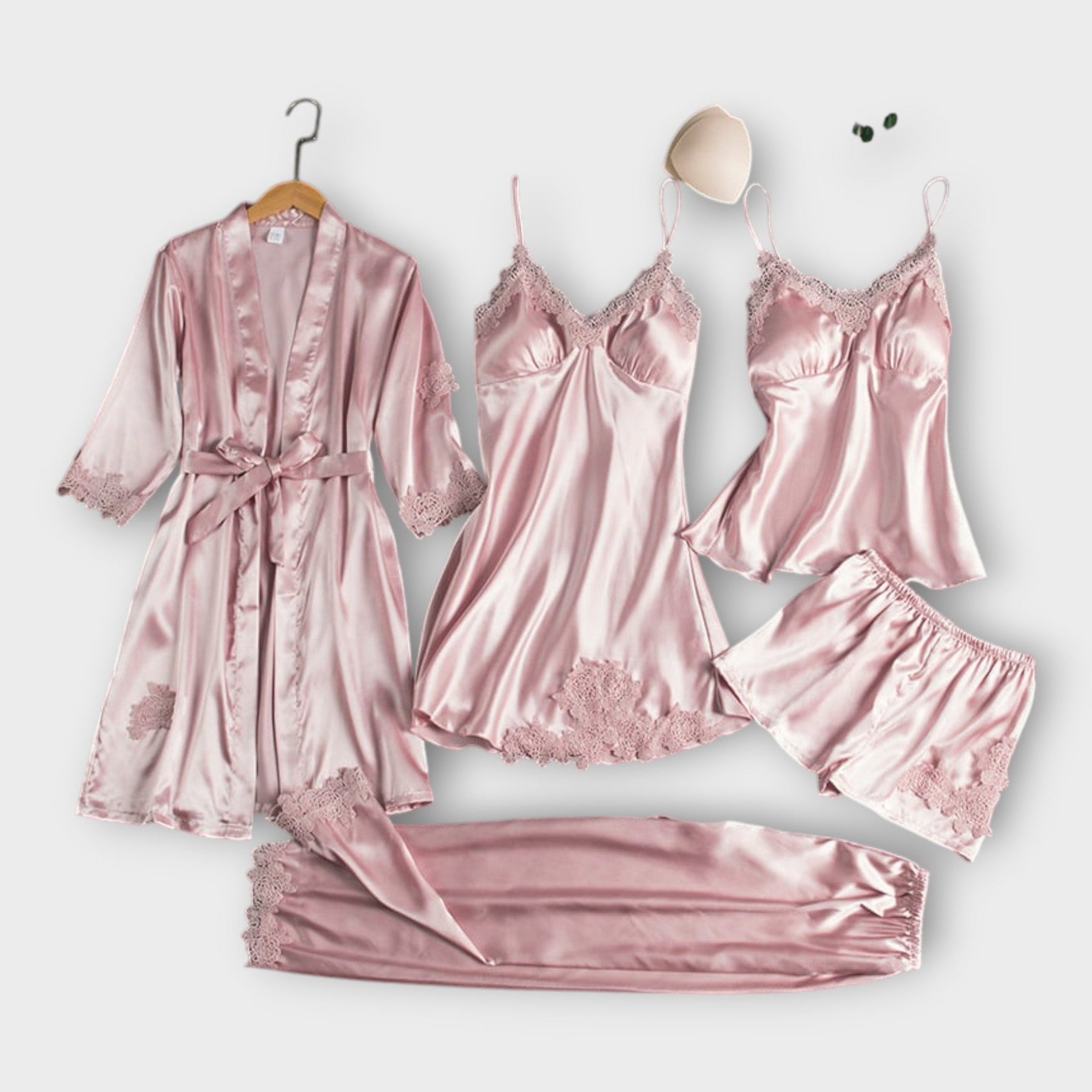 Σετ Σατέν Νυχτικά & Ρόμπα με Εκλεπτυσμένη Αισθητική