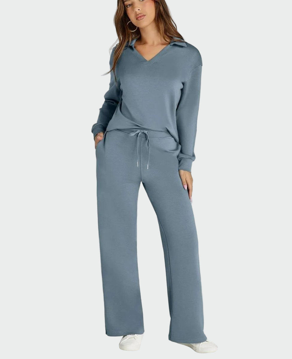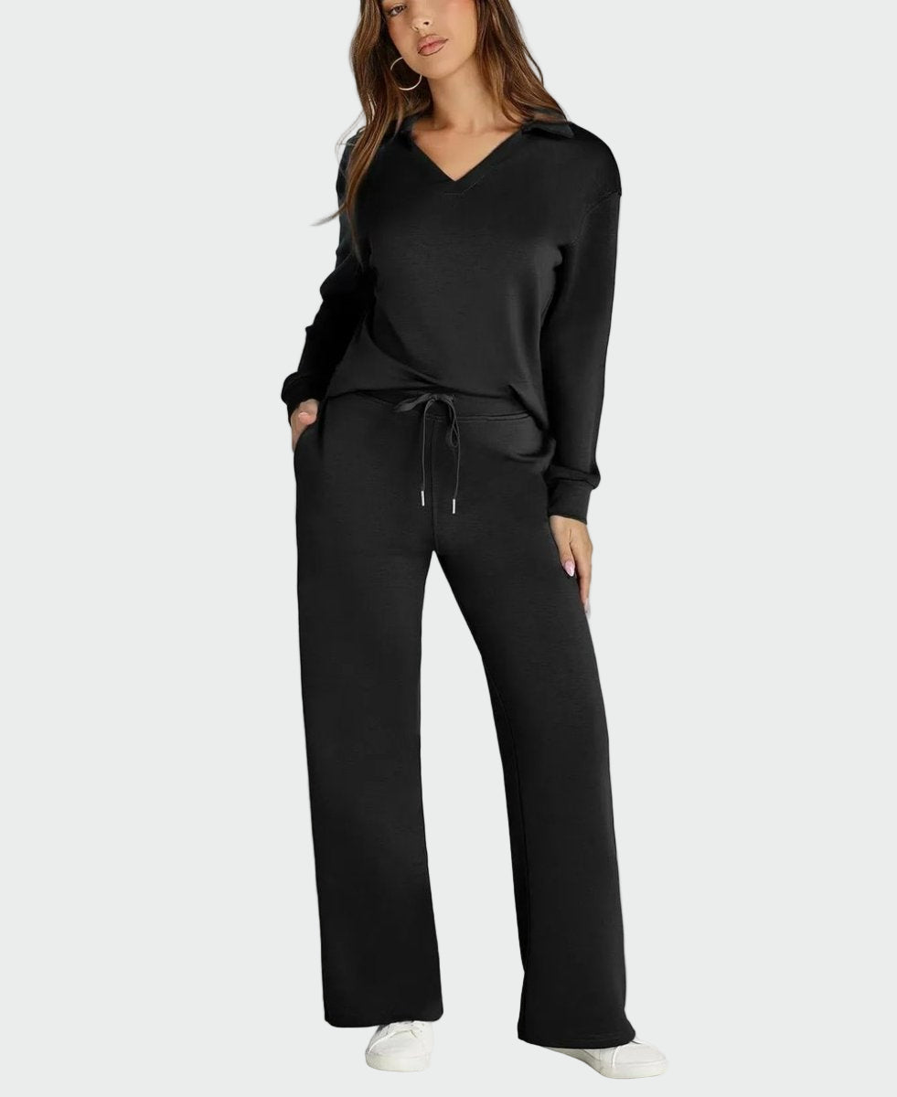 Ένα πρακτικό και κομψό σετ που έχει σχεδιαστεί για άνεση κατά τη διάρκεια των ταξιδιών. Η χαλαρή εφαρμογή του χαρίζει ελευθερία κινήσεων, ενώ τα minimal στυλ του το καθιστά ιδανικό για καθημερινή χρήση αλλά και πιο ιδιαίτερες περιστάσεις. Συνδυάζει άνεση και διαχρονική κομψότητα.