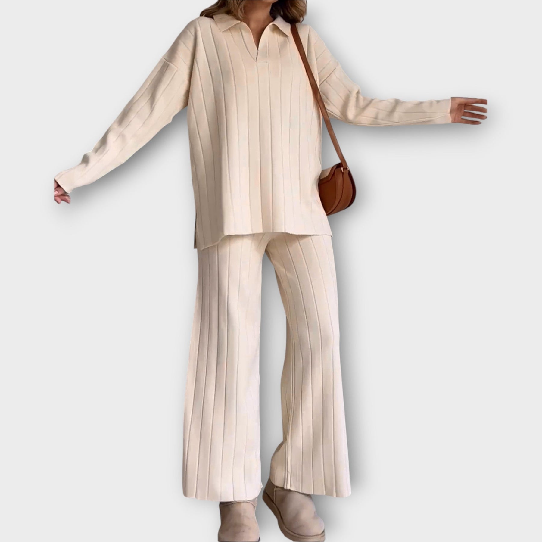 Ένα κομψό σετ που προσαρμόζεται σε κάθε στυλ, χαρίζοντας μια εκλεπτυσμένη και διαχρονική πινελιά σε κάθε εμφάνιση. Ο ευέλικτος σχεδιασμός του το καθιστά ιδανικό για όλες τις περιστάσεις, από casual έως πιο επίσημες. Η απαλή υφή του προσφέρει άνεση, ενώ η χαλαρή εφαρμογή του το καθιστά ιδανικό για καθημερινή χρήση, χωρίς να χάνει τη minimal αισθητική του.