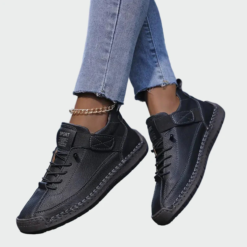 Ένα ζευγάρι ορθοπεδικά σνίκερς που συνδυάζουν άνεση και στήριξη για όλη την ημέρα. Ο εργονομικός τους σχεδιασμός προσφέρει σταθερότητα και μειώνει την καταπόνηση των ποδιών, ενώ η ελαφριά κατασκευή τους χαρίζει ευκολία στην κίνηση. Ιδανικά για καθημερινή χρήση και πολύωρη ορθοστασία.