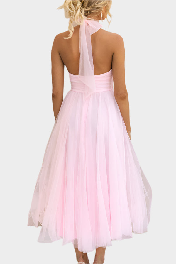 Το Ροζ Φόρεμα από Τούλι με Ψηλό Λαιμό είναι η επιτομή της γυναικείας κομψότητας. Κατασκευασμένο σε έντονο λαμπερό ροζ και διακοσμημένο με ευρύχωρο φούστα από τούλι, αυτό το φόρεμα που σε κάνει να νιώσεις σαν πριγκίπισσα σε κάθε εκδήλωση.
