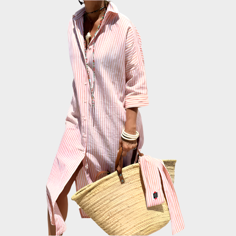 Αγκαλιάστε το χαλαρό στυλ του καλοκαιριού με το Ριγέ Μίντι Φόρεμα. Ιδανικό για βόλτες στο νησί ή χαλαρές μέρες στην πόλη, αυτό το φόρεμα συνδυάζει άνεση και διαχρονική φινέτσα.